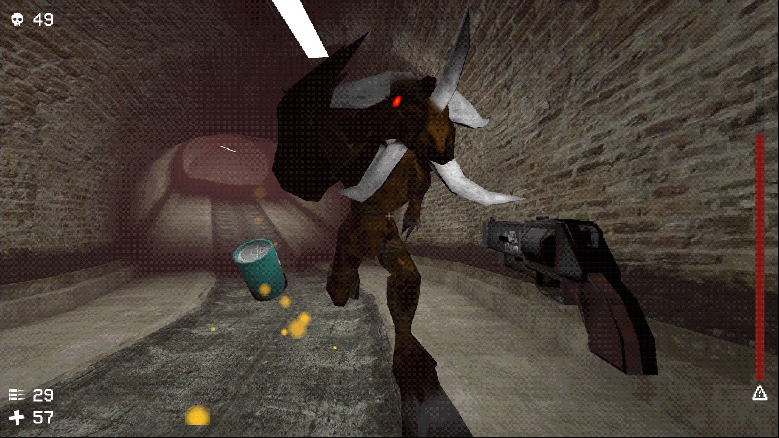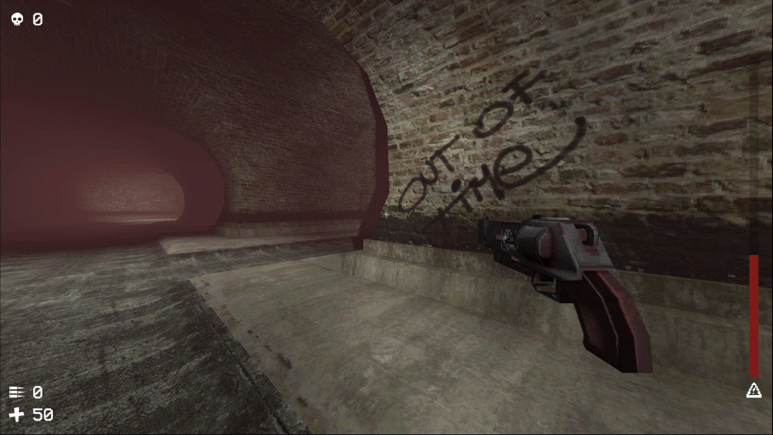 Collect death tokens and ammo. Upgrade yourself. Die from monsters and traps. Respawn and try to kill the Minotaur, who lurks in the labyrinthian sewers.